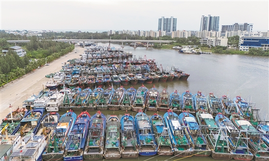 9月24日,渔船就近在海南省琼海市潭门港避风(无人机照片)。