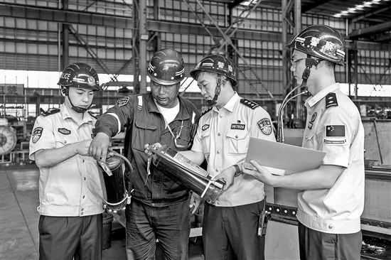 国庆中秋“双节”临近,为护航辖区企业平安发展,9月23日,浙江省舟山市岱山县公安局联合舟山出入境边防检查站执勤二队走进辖区船企,开展节前“安检”、法治宣传,护航企业平安发展。