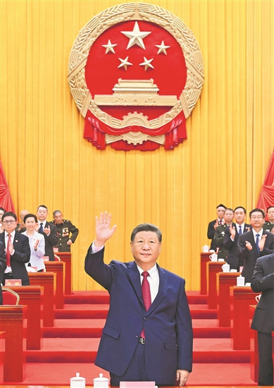 上午10时30分许,在欢快的乐曲声中,习近平等领导同志走上主席台,全场响起长时间的热烈掌声。