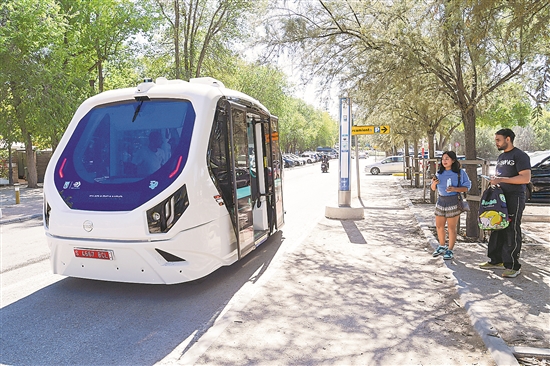 西班牙首都马德里首辆无人驾驶公交车近日试运行。这一配备自动驾驶的巴士为纯电动车,可容纳12名乘客,其运行线路沿途设有6个站点。作为马德里公共交通向数字化、智能化转型的重要尝试,该巴士将运营至10月24日,这期间市民可免费乘坐。图为近日在马德里,无人驾驶公交车在运行。