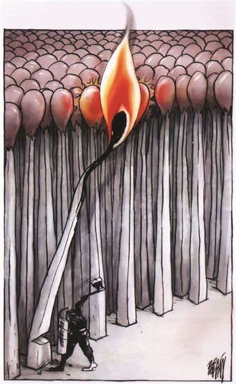 护林员果断地砍掉“林”中那根燃烧的火柴,以阻隔火势的蔓延,保障森林整体的安全,这种勇敢担当的精神何等可贵!