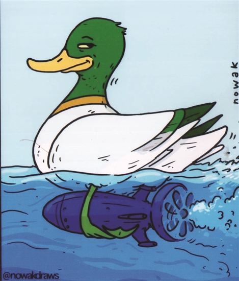 绿头鸭在赛前为自己身上安装了隐形推进器,无疑会出“好成绩”。此举如同运动员服用兴奋剂——赛场还有公平公正可言?