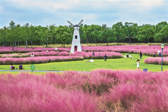 10月8日,上海顾村公园5万平方米的粉黛乱子草进入最佳观赏期,有着秋天独有的浪漫与诗意。黄永庆 摄 / 中新社