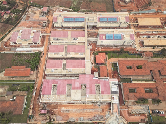 作为共建“一带一路”倡议下的民生工程,马萨卡医院扩建和翻新工程由上海建工集团股份有限公司承建,于2022年7月开工,历时近3年半,将于今年11月完工。完工后,这里将成为一座现代化的综合医院,总床位数达到837张,接诊能力提升至每天2000人次,堪称卢旺达乃至非洲大湖地区的重要医疗中心。图为近日在卢旺达基加利市郊拍摄的马萨卡医院改扩建项目建筑工地。