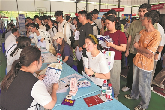 10月15日,“潮聚杭州”高校行——2025年在杭高校公益性校园招聘会浙江工业大学专场在位于杭州的浙江工业大学屏峰校区举行,200多家参会企业现场推出近4000个工作岗位,助力广大学子求职就业。