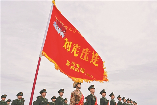 82年后,在纪念中国人民抗日战争暨世界反法西斯战争胜利80周年大会上,在全世界爱好和平的人们注视下,鲜红的“刘老庄连”受阅战旗猎猎招展,“凯然而归”。