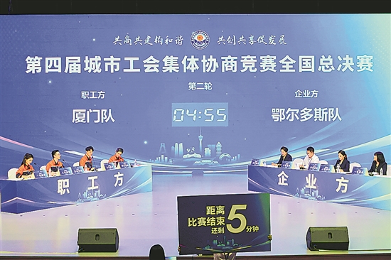 10月12日至13日,第四届城市工会集体协商竞赛全国决赛在四川成都举办,来自全国31个省(区、市)和新疆生产建设兵团的32支代表队参赛。经过激烈比拼,苏州市工会代表队摘得桂冠,厦门、北京、鄂尔多斯三市工会代表队分别获得第二、三、四名,12支代表队获得优胜单位,26名选手获评优秀选手。(本报记者 李娜 陈子蕴 陈骁)