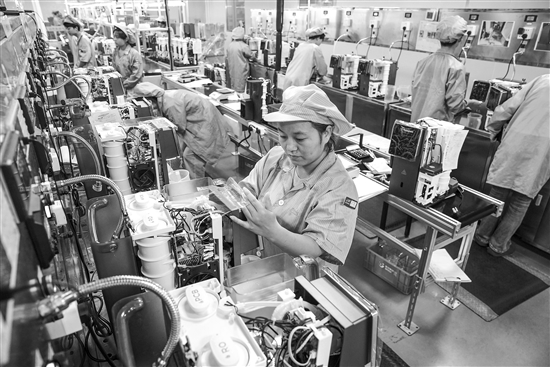 10月11日,在浙江省湖州莫干山高新区的浙江聚倍科技集团股份有限公司生产车间内,工人正加紧生产智能茶饮机。