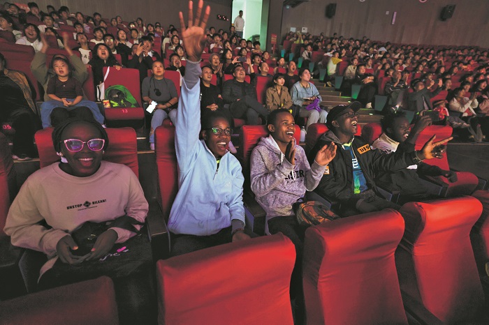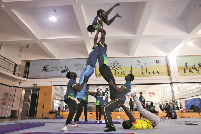 10月13日,来自非洲的学员们在一起练习“大武术”杂技。