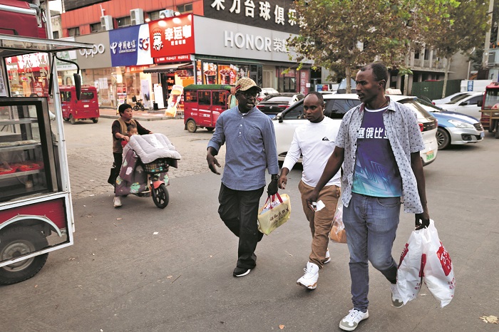 10月14日,马迪尔斯(右三)和同伴到吴桥县城购买生活用品。