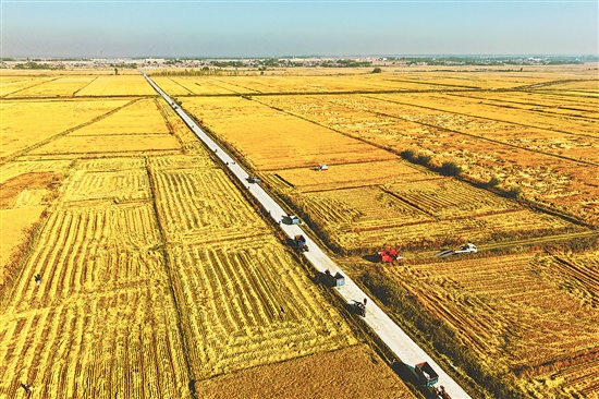 金秋十月,东北大地迎来秋收关键期。在中铁城建三公司建设的公主岭高标准农田项目中,2.8公里混凝土田间路让“巴掌田”变连片良田。运输条件改善进一步提升了秋收效率,同时,项目配套水肥一体化与数字农业系统,科学种植更高效,为“黄金玉米带”夯实产能根基。本报通讯员 陈岳 任爽 摄
