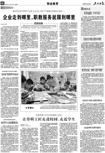 该校还请劳模工匠、技术能手参与教材编写,构建“三级递进,三方协同”教材编写体系,开发校企双元合作活页式教材、工会(产业工人)培训教材,形成“基础理论筑基+劳模案例铸魂+实践技能赋能”的模块化教材。引进劳动模范、技术能手,建立劳模工匠和专业教师相结合的“雁阵式”教学创新团队,通过劳模创新工作室、名师(名匠)工作室、技能大师工作室等教学科研平台,形成“头雁”带领,“新雁”创新、“雁群”协作的金师培育体系。联合劳模工匠共建产教融合实践中心,还原真实技术场景,打造“教学工厂”,建立“项目共研、人才共育”的双向机制,融入劳模工匠元素,打造具有工匠文化特色的实训环境。广东工匠学院育训并举,开展产业工人培训,构建 “培训-认证-就业” 全链条技能人才发展路径。