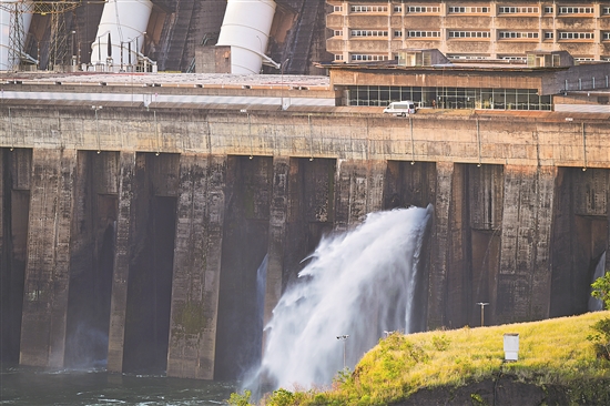 近日在巴西伊瓜苏拍摄的伊泰普水电站大坝。 新华社记者 陈昊佺 摄