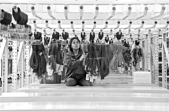 10月21日,四川省广安市某生产车间内,工人在检查汽车线束质量。