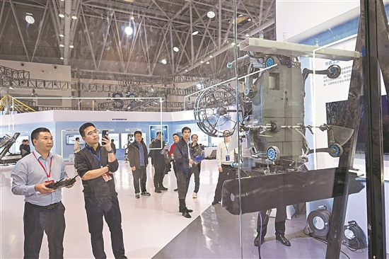 10月28日,在重庆悦来国际博览中心,市民在2025年世界城市日中国主场活动主题展览区参观智能避障幕墙清洗机器人。