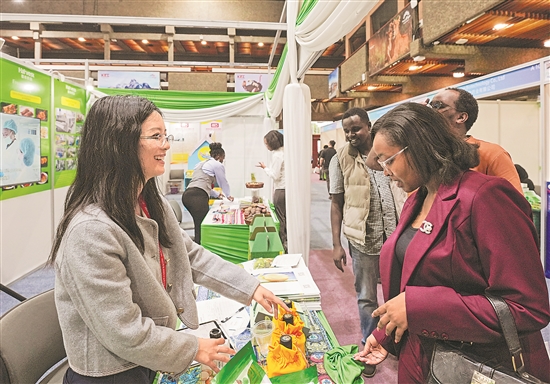 近日,在2025非洲国际农业博览会上,展商向来宾介绍产品。新华社记者 李亚辉 摄