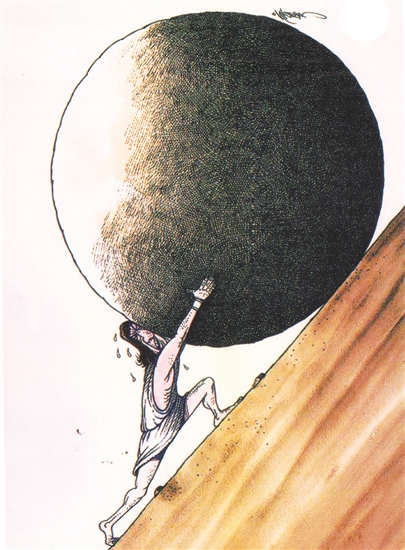 俗话说:有志者事竟成。看,这个小伙子为了将球体推到顶端,下定决心,不怕牺牲,竭尽全力夺取了令人瞩目的好成绩。