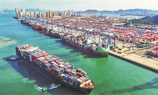 “双十一”临近,中国(山东)自由贸易试验区青岛片区跨境电商包裹量不断增加,商品高效通关后密集装卸船。自贸区挂牌六年来,通过创新“区关港+”联动机制等百余项举措,为畅通国内国际双循环提供了坚实的物流支撑。