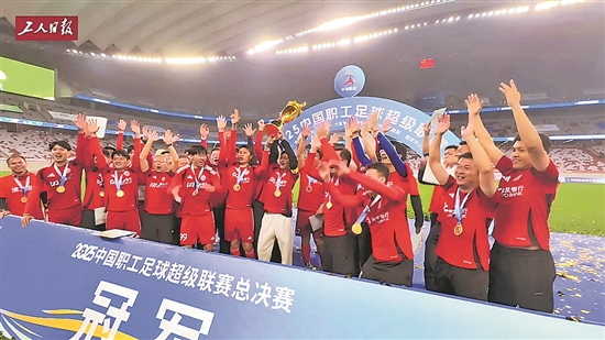10月31日晚,随着陕西西安国际足球中心的终场哨响,首届中国职工足球超级联赛圆满落幕。浦发银行队通过点球大战击败东风本田队,夺得冠军。当冠军奖杯被高高举起,我们看到的不仅是这项赛事的胜利收官,更是一曲新时代劳动赞歌在绿茵场上的激情唱响。(本报记者 李元浩 莫荞菲 曹玥 实习生 邱震宇)