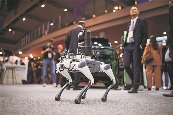 2025全球智慧城市大会于当地时间11月4日至6日在西班牙巴塞罗那会展中心举行。图为近日在西班牙巴塞罗那2025全球智慧城市大会上拍摄的机器狗。