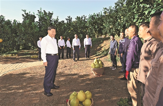 离开时,习近平同村民们亲切道别。他叮嘱,党和政府要继续加强对老区的政策扶持,老区广大干部群众要齐心协力、奋发图强。他祝愿乡亲们的日子过得像金柚一样又甜又美。