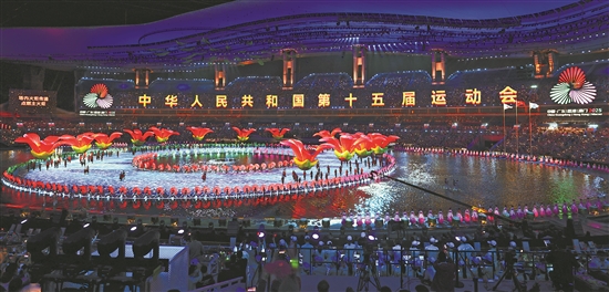 今晚,位于广州市的广东省奥林匹克体育中心高朋满座,第十五届全国运动会(以下简称十五运会)开幕式在这里盛大举行。这是全运会历史上首次由粤港澳三地联合承办的体育盛会,也是目前为止规模最大、承办城市最多的一届。