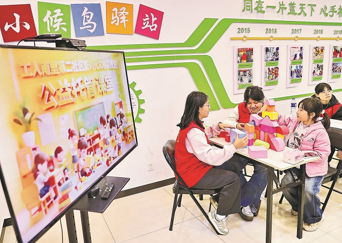 据了解,该社区联动周边高校资源,在工作日下午4点至5点30分,组织大学生志愿者走进社区“小候鸟驿站”,为小朋友辅导作业,开展趣味游戏、互动体验等活动,丰富小朋友的课后生活。