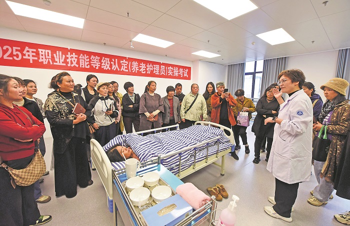当日,该技能培训班在仙居县技师学院开班。40余位转岗待岗职工、进城务工和新就业形态劳动者等,通过学习基础照护、生活照护、康复服务等理论与实操知识,提高就业能力。本报通讯员 王华斌 摄