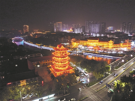 近年来沧州市统筹做好保护、传承、利用文章,扎实推进大运河文化带建设,促进文旅产业融合发展。夜幕下,京杭大运河沧州段沿线众多建筑流光溢彩,千年运河与城市风貌在夜色中完美交融。