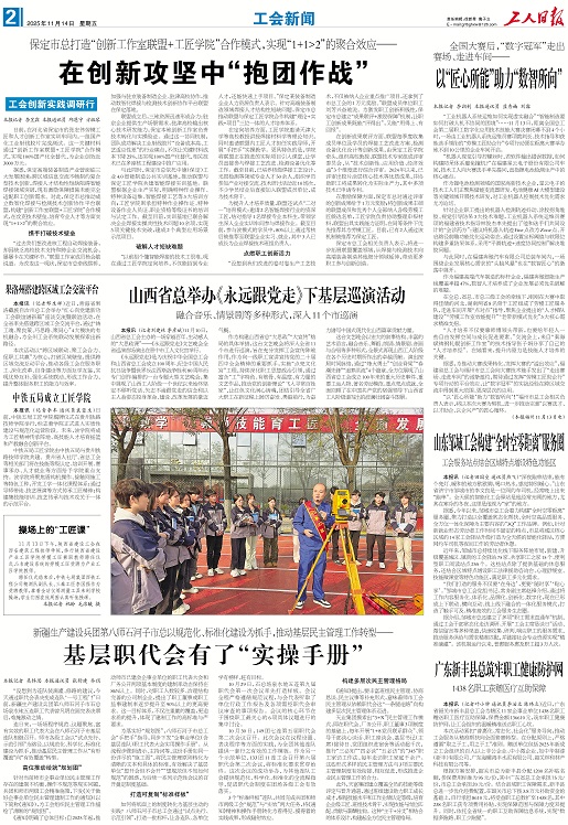 在全总、省总、市总三级工会的牵线下,刚刚在大赛中取得佳绩的河北、湖南两省8名骨干工匠组成了劳模工匠服务队,走进车间开展“点对点”指导,聚焦企业提出的“人才梯队建设”“劳模工作室效能提升”“老带新模式优化”3大核心需求精准支招。