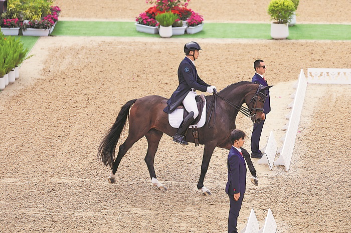 从操控缝纫机到驾驭温血马,从面对静默的布料到与敏感的生灵沟通,这条跨界之路的难度可想而知。他的搭档“A Plus”是一匹德国奥登堡温血马,天性敏感多疑。“一开始特别困难”,李裕昂坦言,“要不停地安抚它,取得它的信任,才能慢慢开始配合。”深知自己起点为零,他将大量时间投入训练,提前旁听外教授课,细心观摩他人动作,将单个动作重复千遍万遍直至形成肌肉记忆。