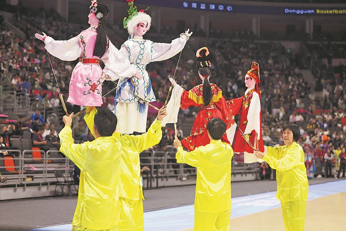 比赛间隙的木偶戏演出。本报记者 王伟伟 摄