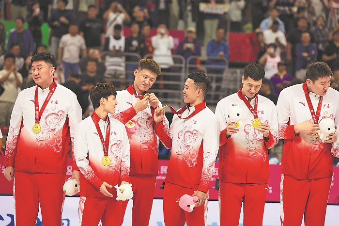 11月12日,东道主广东队夺得十五运会男篮成年组冠军。 本报记者 王伟伟 摄