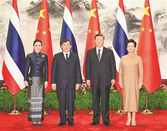 新华社北京11月14日电(记者冯歆然 邵艺博)11月14日上午,国家主席习近平在北京人民大会堂会见来华进行国事访问的泰国国王哇集拉隆功。