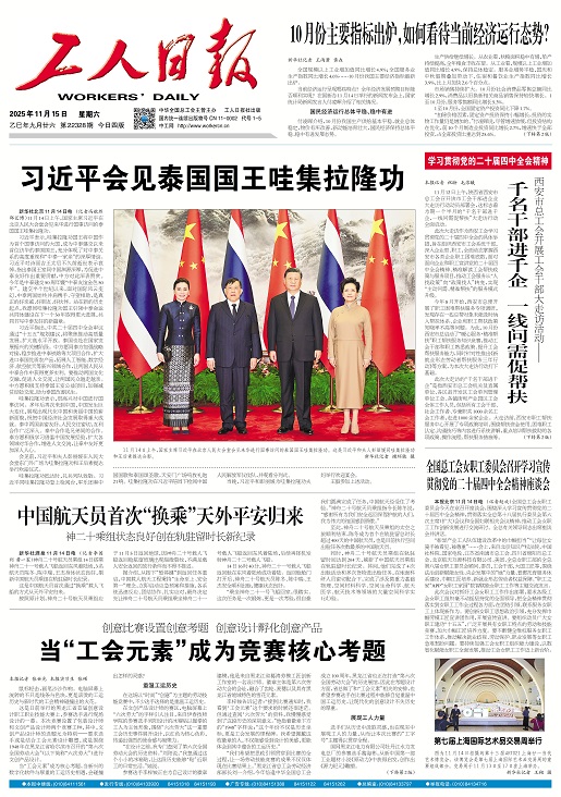 李梓铵告诉记者:“接到比赛通知时,我看到‘工会元素’这个要求的时候还很迷茫。但通过查阅‘六次劳大’的资料,我慢慢感受到了这段历史的深刻意义。”他指着徽章下方的“1948”字样说:“这个年份不仅是历史坐标,更是工会发展的里程碑。我希望佩戴这枚徽章的人,不仅能感受到设计的美感,更能体会到其中蕴含的工运历史。”