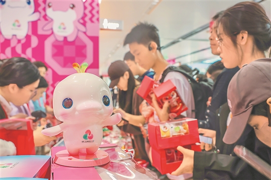 随着第十五届全国运动会各比赛项目陆续启动,赛事热度逐渐攀升,十五运会特许商品也备受追捧,市场掀起“抢购潮”。本报记者 王羡茹 摄