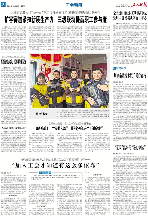本报讯 (记者刘旭 实习生颜瑜欣)记者日前获悉,辽宁省大连市总工会聚焦现代化产业体系建设,构建以赛道扩容、三级联动、成果应用、体系保障为核心的“四位一体”职工技能竞赛体系,通过机制创新推进竞赛活动规范化、制度化发展,有效破解产赛融合度不高、职工参与度不足、结果运用不力等难题,为培育高素质产业工人队伍、服务地方经济高质量发展探索了新路径。