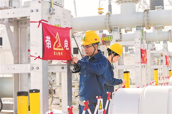 近日,国网陕西渭南供电公司灵泉330千伏变电站330千伏泉咸线,迎来投运以来的首次检修,运维人员正为该项检修工作的开展布置安全措施。此项工作的开展标志着秋检工作进入最后的收尾冲刺阶段,为迎接冬季用电高峰做好准备。