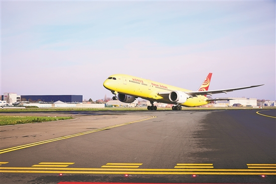 近日,在比利时布鲁塞尔国际机场,海南航空布鲁塞尔至重庆直飞航线首航航班起飞。新华社发
