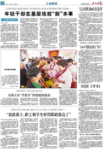 为保障年轻干部在基层一线练就过硬本领、砥砺一流作风,杭州市总出台了政治铸魂、导师机制、脱产培训、团队攻坚等4方面保障举措,为打造忠诚干净担当的高素质专业化工会干部队伍保驾护航。