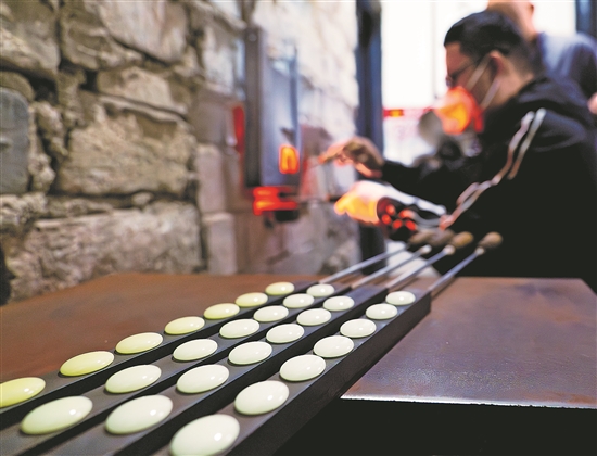 11月19日,匠人在云南保山市永子文化园滴制永子。