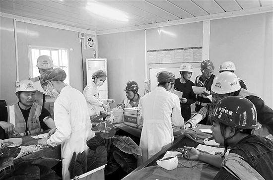 为保障一线建设者身体健康,日前,中铁十八局集团北京公司安阳江山著项目部精心组织并开展免费体检活动。该项目部在此次体检活动中提前与专业医疗机构对接,将体检点直接设在项目工地上,最大程度减少工人往返时间。幸宗凡 摄