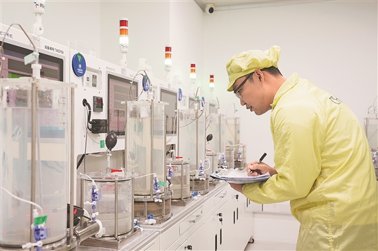 11月19日,在江苏苏州同心医疗科技股份有限公司,研发工程师在记录人工心脏血泵的寿命测试数据。