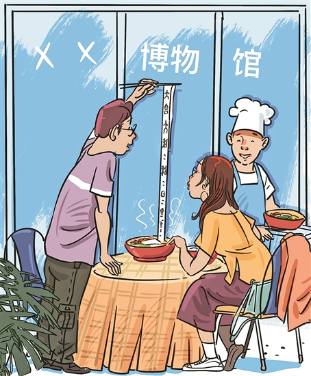 逛半晌博物馆下来,体力消耗不少,难免饥肠辘辘。在博物馆吃上一口热乎饭、有特色的饭,某种程度上也是游客的刚需。目前,很多博物馆的内部商店也销售面包、饼干等食物,但品种单一,难以满足游客多元需求,而外出用餐后往往不能再返回继续参观。这种用餐痛点值得关注。眼下,各博物馆依托“镇馆之宝”推出特色饮食,既可以满足游客味蕾之需,又可以用接地气的形式强化文化感知,一举多得。博物馆作为公共文化空间,进一步拉近与游客的距离,让文化殿堂多一些生活气息,应是丰富文化体验的一部分。期待更多文博单位结合自身情况,为人们带来更多惊喜。