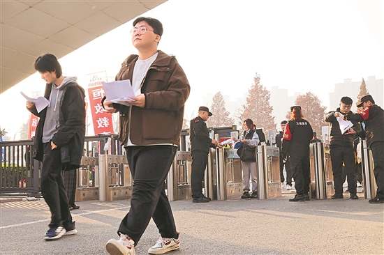 11月30日,江苏省连云港中等专业学校考点,考生正在有序入场。当日,中央机关及其直属机构2026年度考试录用公务员公共科目笔试举行。根据2026年度“国考”招考公告,报考者年龄一般为18周岁以上、38周岁以下,对于2026年应届硕士、博士研究生,放宽到43周岁以下。本报通讯员 耿玉和 摄