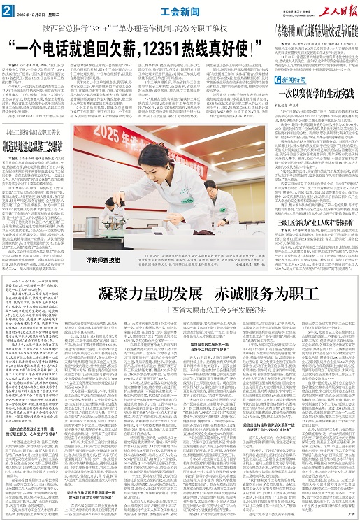 同时,陕西省总还推动服务职工的“热线端”与法援等工作的“实体端”融合,保障新就业形态劳动者权益;加强热线数据分析,及时掌握新就业形态劳动者劳动权益保障中的难点和热点,发挥风险预警作用,维护劳动领域政治安全。