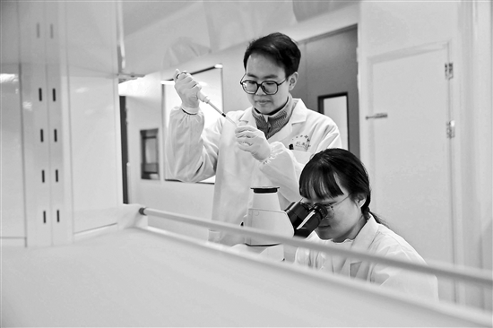 11月28日,来自南京师范大学的博士生在南京智能生物制造创新中心实验室做实验。中心依托南师大江苏省合成生物技术工程研究中心,联合龙头企业攻关生物制造的前端产业链关键技术,致力于培育合成生物领域的专家人才,构建“技术研发-中试验证-产业转化”的全链条创新体系,形成“产学研用”深度融合的产业生态。本报记者 刘金梦 摄