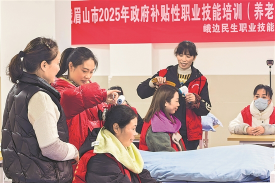 12月2日,四川省峨眉山市人社局依托当地培训机构,组织30名待就业人员等重点群体,举办医疗护理员职业技能培训班。学员们通过系统的理论学习和实践操作,掌握医疗护理技能,有效拓宽就业渠道。本报通讯员 李华时 摄