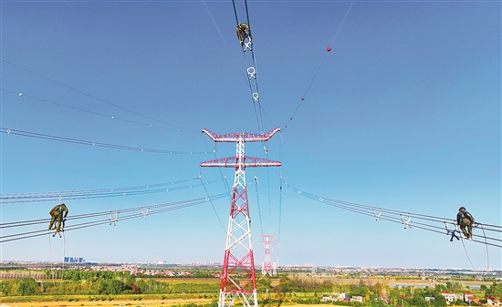 近日,在湖北省汉川市,国网湖北超高压公司员工对汉川电厂四期送出工程——汉川电厂至500千伏军山变电站线路跨越汉江区段进行竣工质检验收。他们在距离江面100米高的铁塔上开展走线验收,犹如高空“走钢丝”。