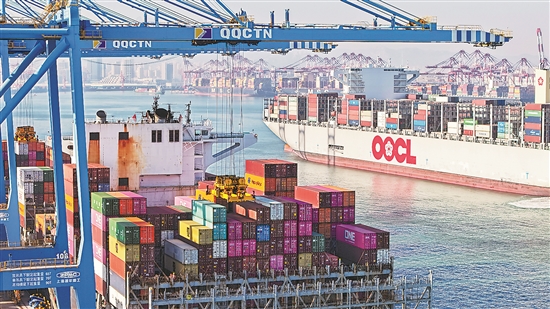 连日来,山东港口青岛港巨轮频靠,作业繁忙,各单位向着全年目标冲刺。 新华社记者 李紫恒 摄
